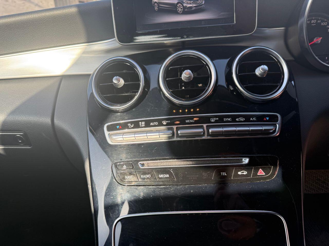 ULEZ Diesel. This C220 Sport Saloon is finished in Metallic Silver with Black leather/heated front seats. It is fitted with Mercedes Navigation/Bluetooth/DAB, cruise control, limiter, paddle shift gear change automatic gearbox, power fold mirrors, front and rear park assist, LED headlights, DAB Radio, CD, USB, Climate control air con,17" Alloy wheels and more. 2 keys